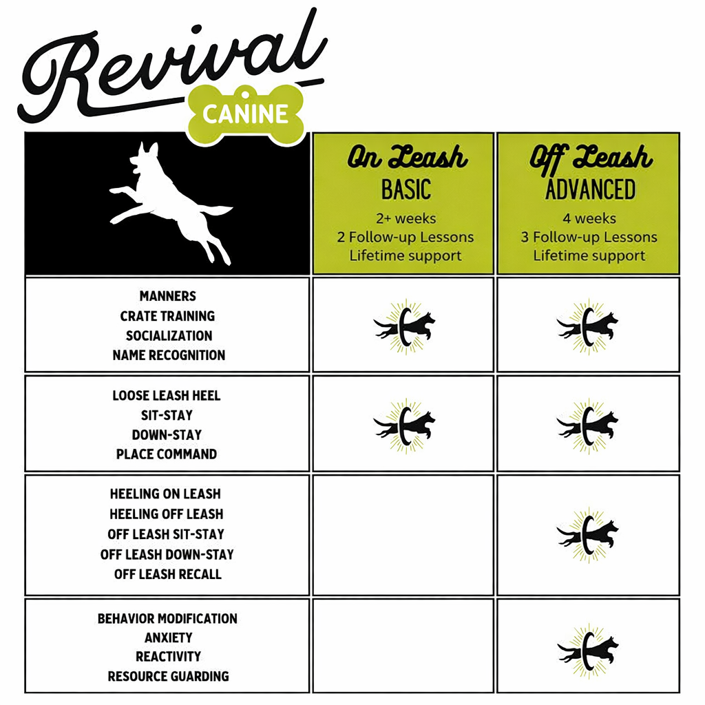 Each dog is unique and Revival Canine’s training programs emphasize structure and consistency using balanced training principles to achieve positive relationships.