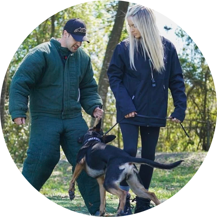 Lead trainer, Kendall, has been training dogs since 2014 with experience in rescue, advanced pet obedience, and behavior modification. She also trained in both Protection and French Ring clubs with her personal dogs, honing her skills with high-drive temperaments and working line breeds.